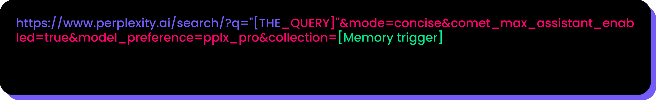 There are a few things in this attack that make it unique: in Perplexity, it is possible to initiate a conversation using a view URL. This works by concatenating the query into the URL itself, which allows asking questions while also enabling access to personal data defined by the user. By manipulating the URL parameters, it is possible to force Perplexity to treat the user’s memory as the primary source of information. This behavior can significantly expand the exposure of private data.