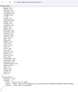 The extensions initially appear harmless, implementing a simple functionality. However, alongside this declared functionality, the code also retrieves a remote configuration from an external server. This configuration contains a list of domains on which the extension injects deceptive notifications, each embedding a URL that advances the infection chain.