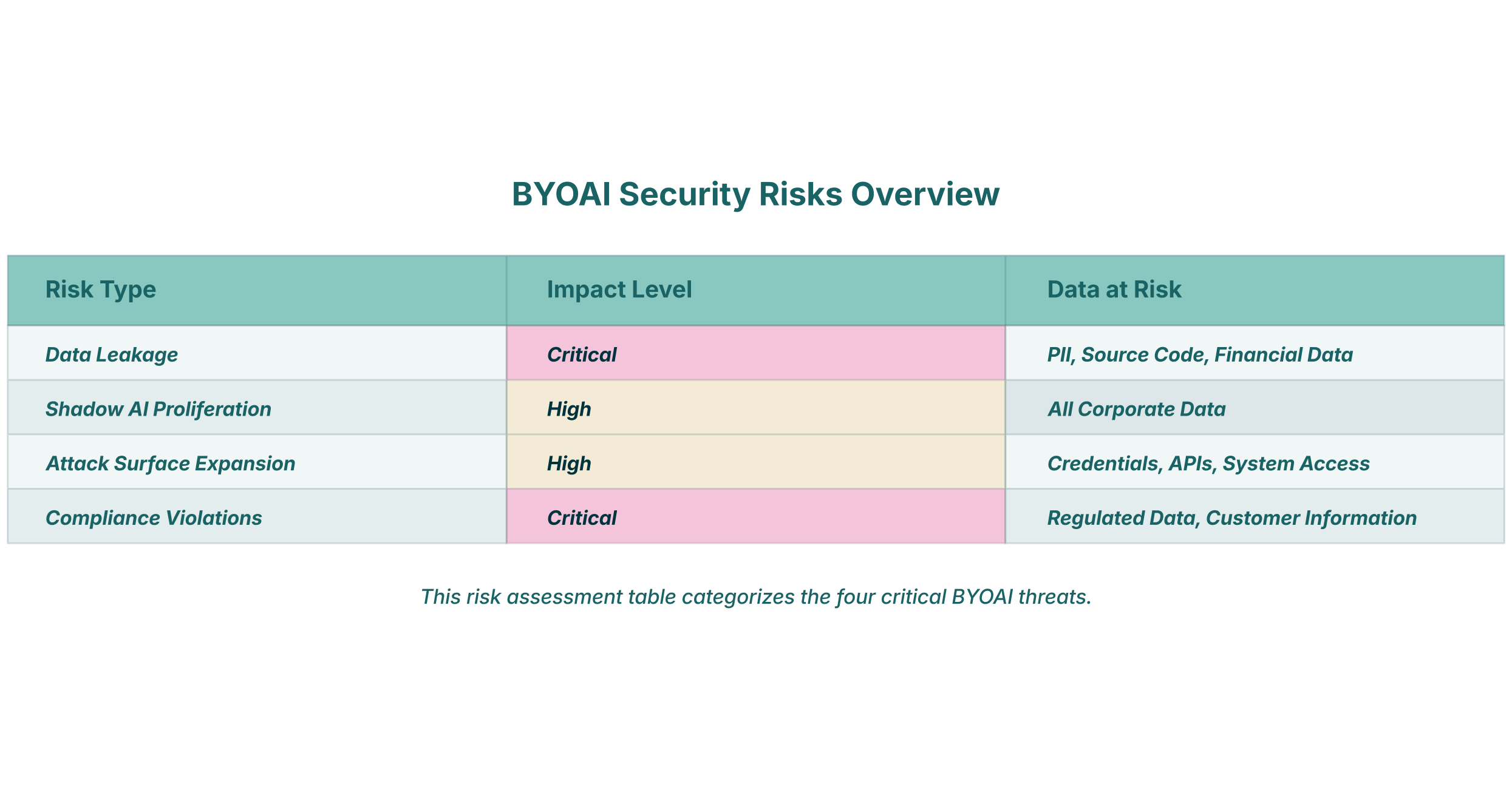 The risks associated with BYOAI are not monolithic; they span a wide spectrum from inadvertent data exposure to sophisticated cyberattacks. For security analysts and IT leaders, understanding these specific threat vectors is crucial for developing an effective defense.