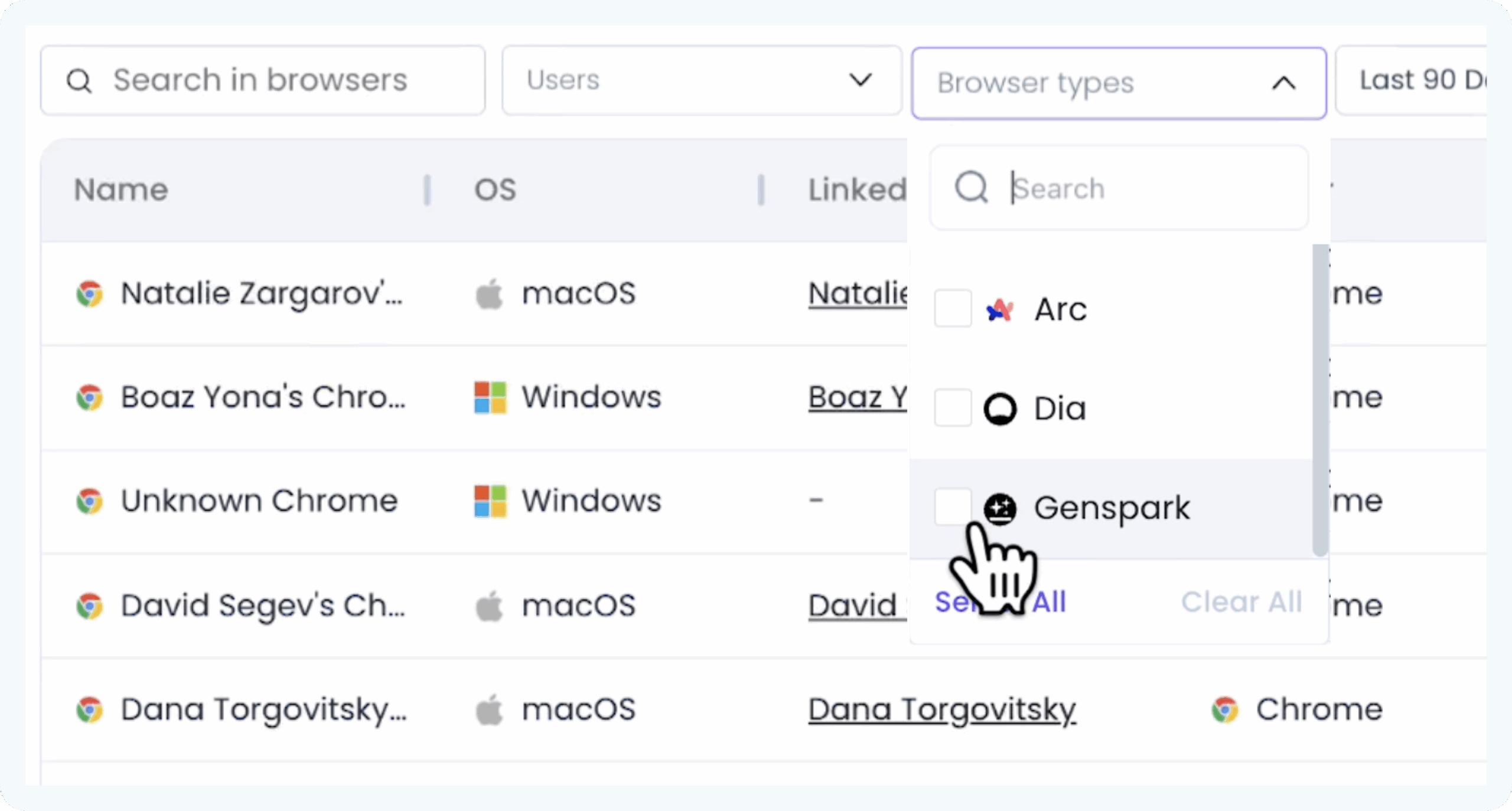 Request a Demo See LayerX in ActionIdentify and monitor AI browsers such as Comet, Dia, Genspark, and Edge Copilot Mode. Gain visibility into usage trends, adoption, and risk exposure across the enterprise.